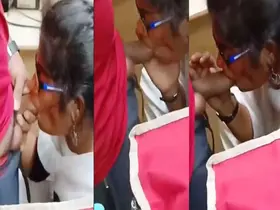 Homely house wife gives blow job to office staff and gets caught on tape.