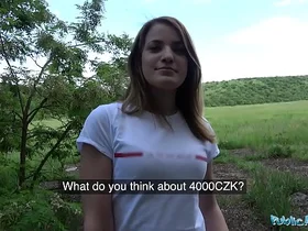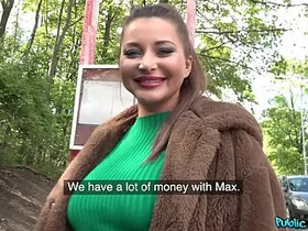 Public Agent Hot blonde student fucks cancer in the woods for cash