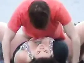 Big tits bounce while desi honey is fucked outside.