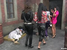 Hermaphrodite close to two dicks fucked by a slave